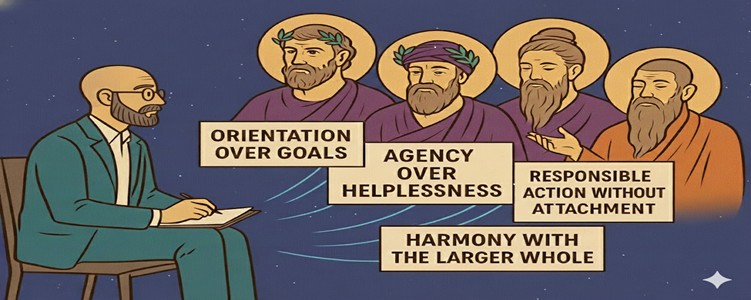 We humans have asked these questions long before coaching frameworks, models, and certifications appeared on the horizon. Ancient thinkers across cultures explored topics like purpose, agency, suffering, and attachment. The same topics surface in coaching conversations frequently.
